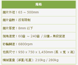 - 研磨速度為無段變速,可隨齒距調整。